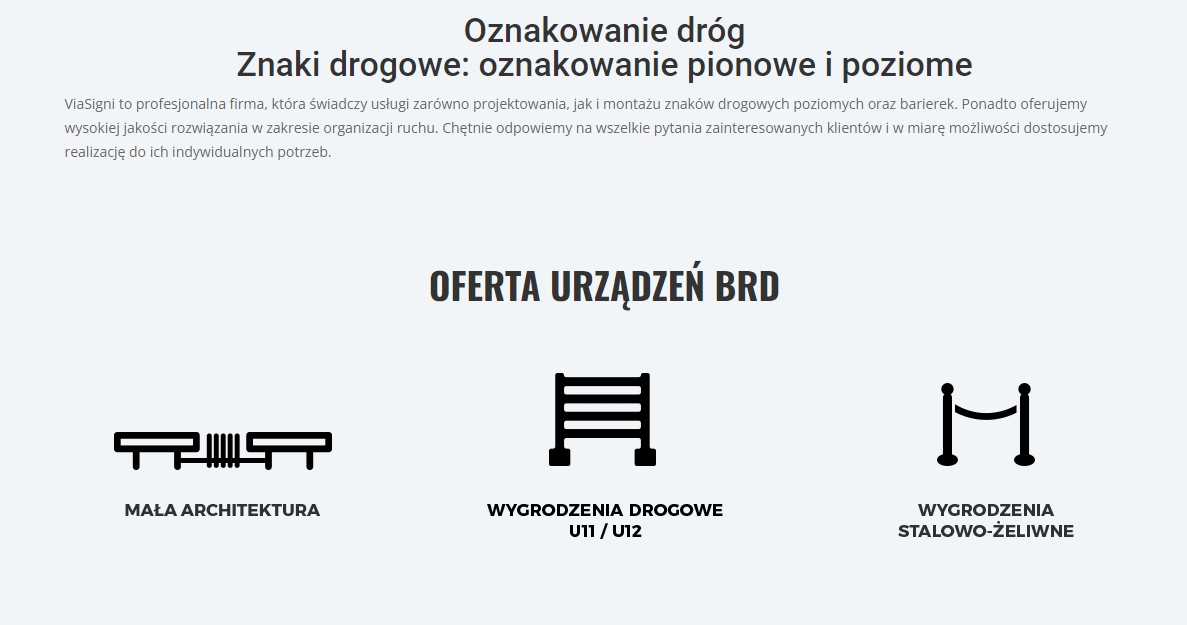 ViaSigni to firma specjalizująca się w dziedzinie oznakowania dróg oraz zagwarantowania bezpieczeństwa na drogach. W ofercie ViaSigni znajdziecie Państwo szeroki zakres usług i produktów, w tym malowanie dróg oraz produkcję wytrzymałych barierek. W ramach naszej działalności oferujemy profesjonalne usługi dla infrastruktury drogowej, takie jak: